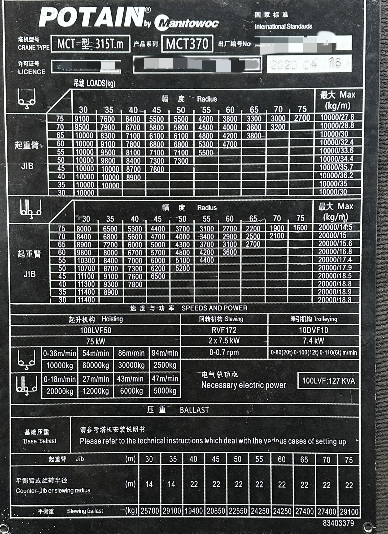 🟠Model: Potain MCT370